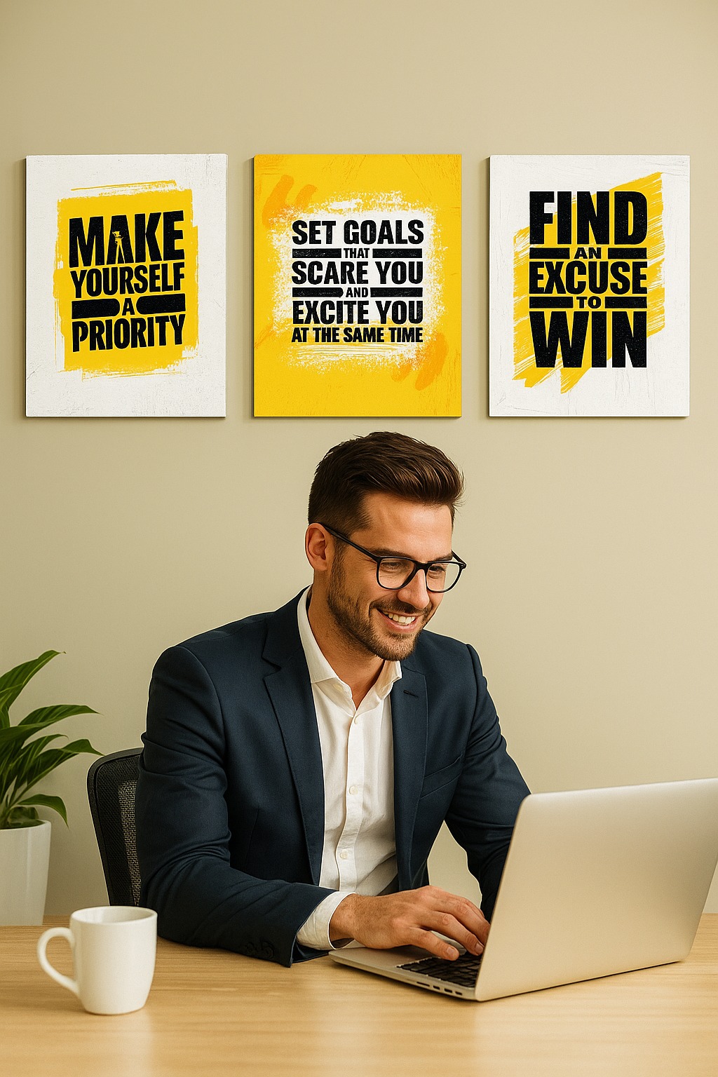 Set of 3 Motivational Theme phototiles for wall Decoration/ wooden phototiles