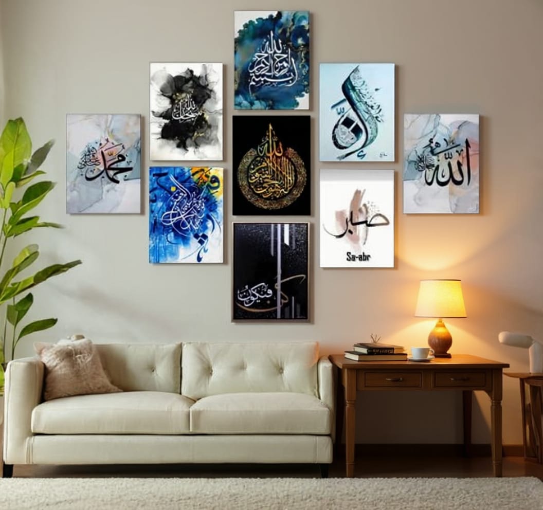 Set of 9 Islamic wall Art phototiles for wall Decoration/ wooden phototiles