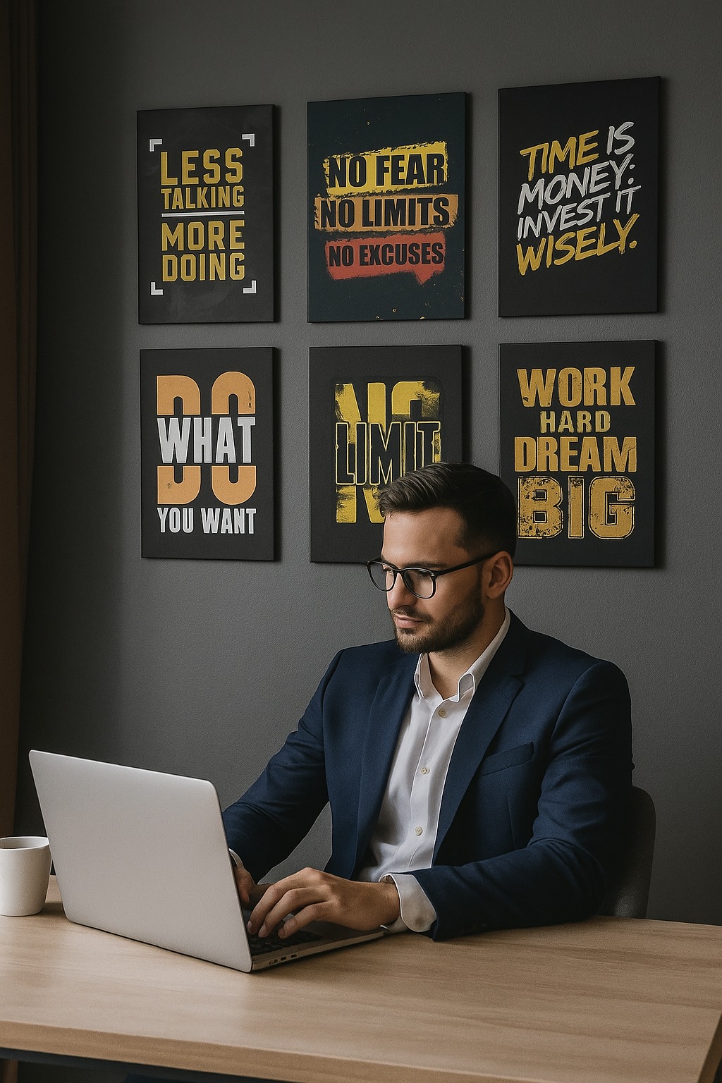 Set of 6 Motivational Theme phototiles for wall Decoration/ wooden phototiles